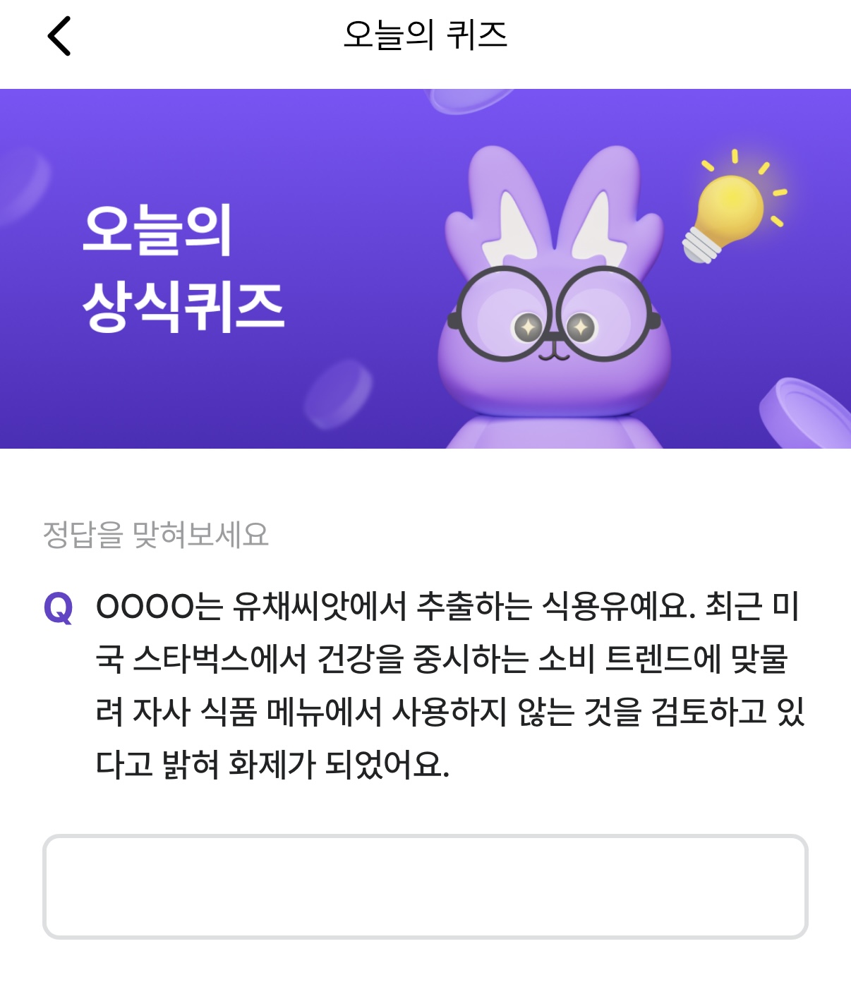 #비트버니퀴즈정답 #카놀라유 #스타벅스이슈 #클린라벨 #7월11일퀴즈 #건강식생활 #식용유트렌드 #비트버니상식퀴즈 #비건소비 #카놀라유논란