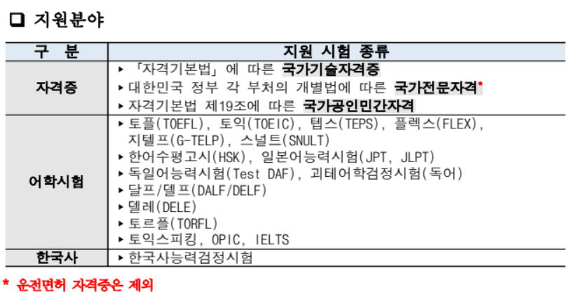 • 일부 지자체는 추가로 응시료까지 별도로 지원