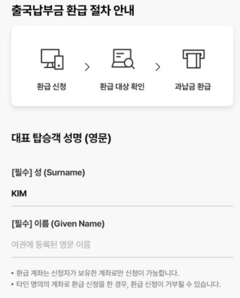 • 항공사 자체 환불로 이미 출국납부금을 환급받은 경우는 중복 신청 불가합니다.