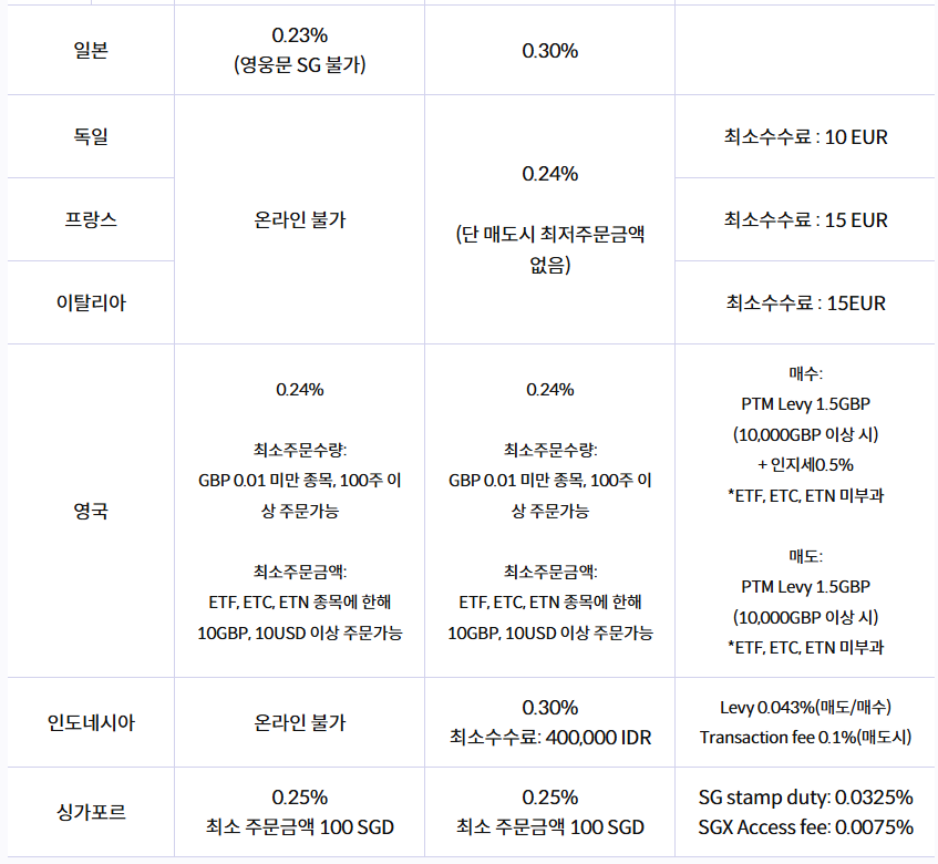 유관기관 수수료 | 각 국가의 증권거래소, 결제기관 등에서 발생하는 제3자 비용 |