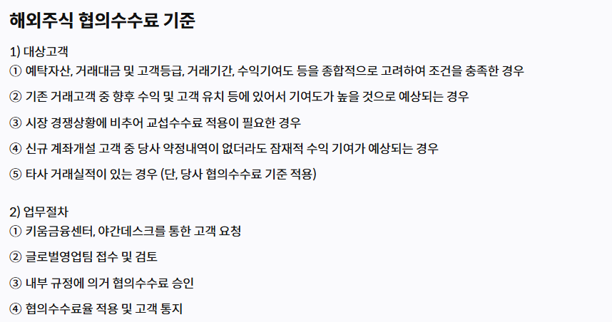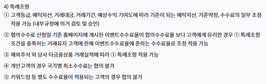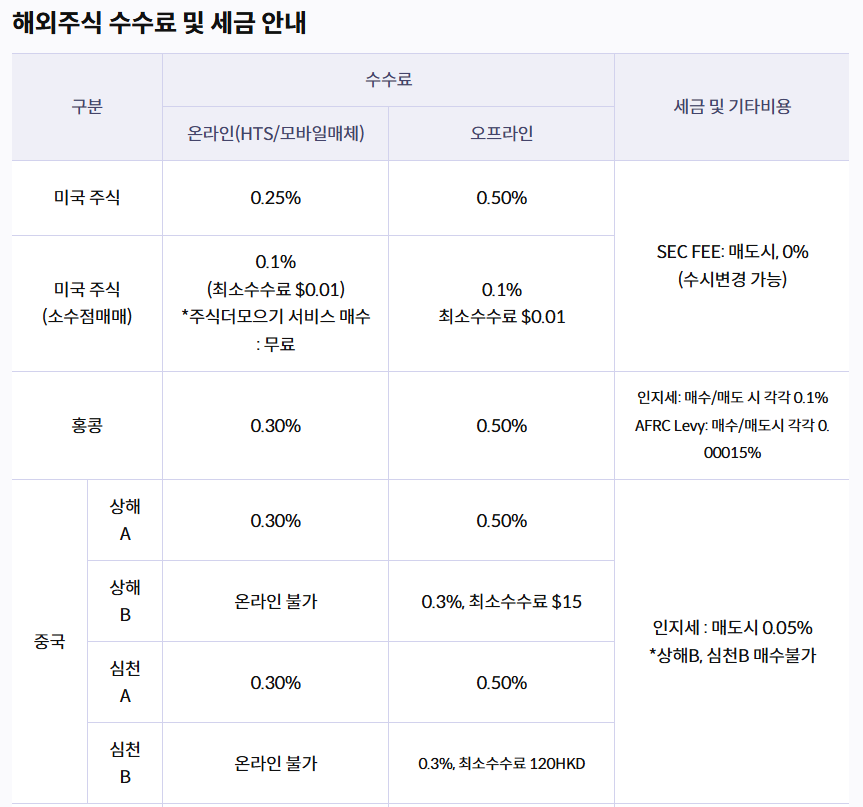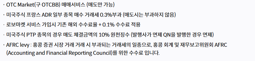 | 유관기관 수수료 | 각 국가의 증권거래소, 결제기관 등에서 발생하는 제3자 비용 |