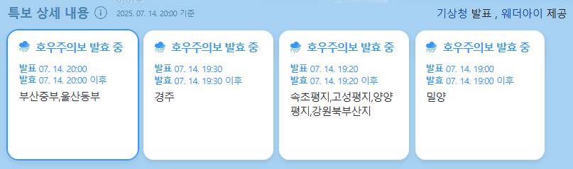 이처럼 일정 시간 내 집중적인 강수가 예측될 때 발령되며, 지역 상황과 지형, 기온 등을 종합적으로 분석한 뒤 특보를 결정합니다. 특히 산간, 계곡, 저지대 지역에서는 이 정도 강수량으로도 큰 피해가 발생할 수 있으므로 더욱 경각심을 가져야 합니다.